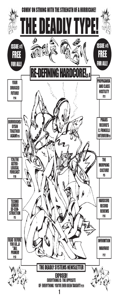 The Deadly Type #1: Pen and ink, and Quark Express. Layout: Quark Express (1997).