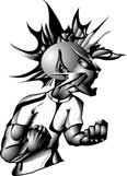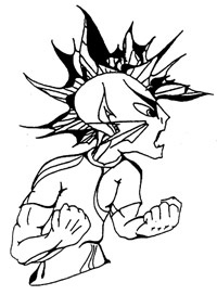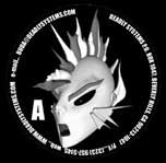 This guy was originally created in 1985, in my Visual Communications class in North Allegheny High School. He was sort of this Alien Punk Rocker. Though, to be honest, I had really no idea what he was to be when I made him. He just sort of “came out”. As time went on, he would pop up in little things I did, and when I put together DS I thought he looked sort of like some of our fans: sort of a next Millenium techno gutter punk with a bit of angst and s sort of Alien, Mayan Temple look going on. Whatever. Anyway, I plopped him on the first DS record, as a symbol, and he just sort of stuck. His first incarnation was done with Rapidograph drawing pens, the 2nd was done with Adobe Illustrator, and his 3-D version was done Lightwave 3-D. He has a fully animatable body now! Yeah! He also made his first story appearance on the cover of DS006 “Somatic Response”.