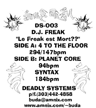 DS001”Deadly Buda”This release never had a cover, but of course, was the first appearance of “Deddy” on the label. (1996)