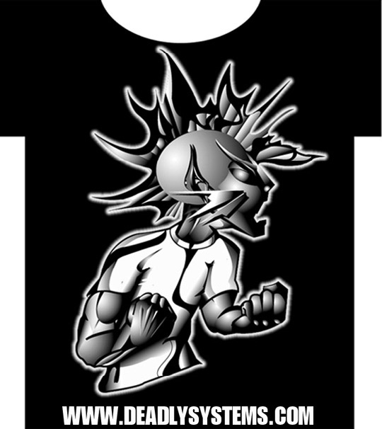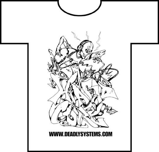 “Deadly Systems Wild Style Hardcore”: appeared in Massive magazine and a modified version appeared in Raygun. Pen and ink and Adobe Illustrator (1998)