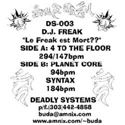 DS003 “Le Freak est Mort??” D.J. Freak: hand sketched and inked, layout with Adobe Illustrator and Photoshop.(1997)
